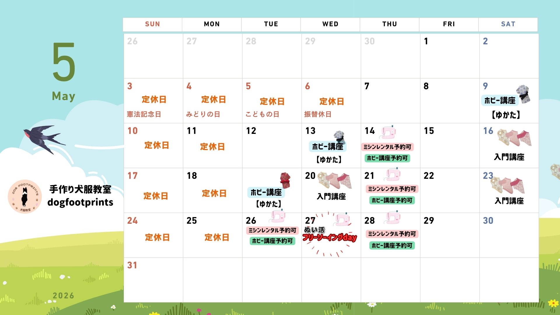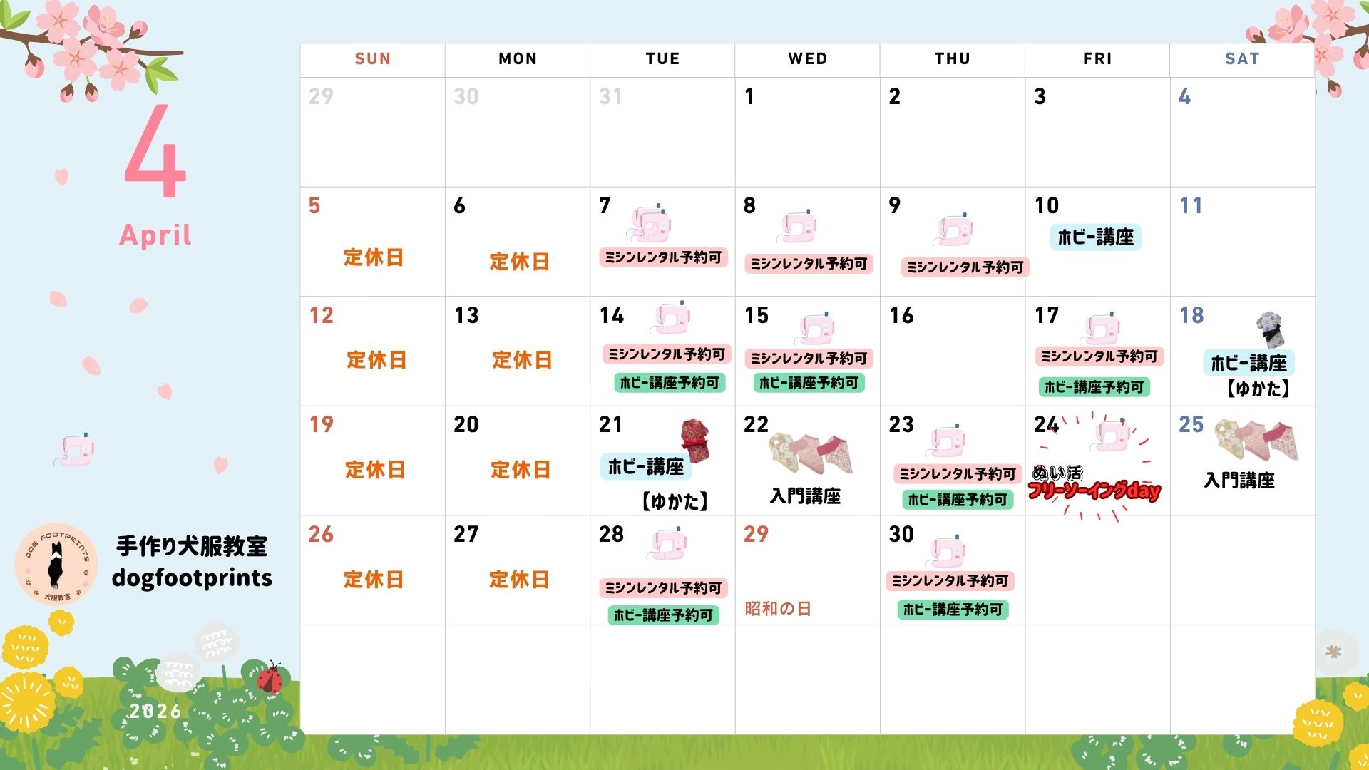 北海道札幌市の手作り犬服教室 dog footprintsです。